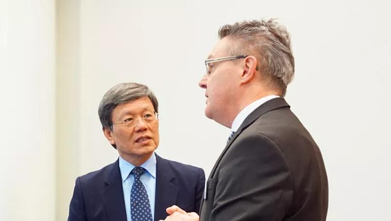 精明公司總經理王偉東先生(左)與蘇州阿爾克森總經理余永吉先生(右)