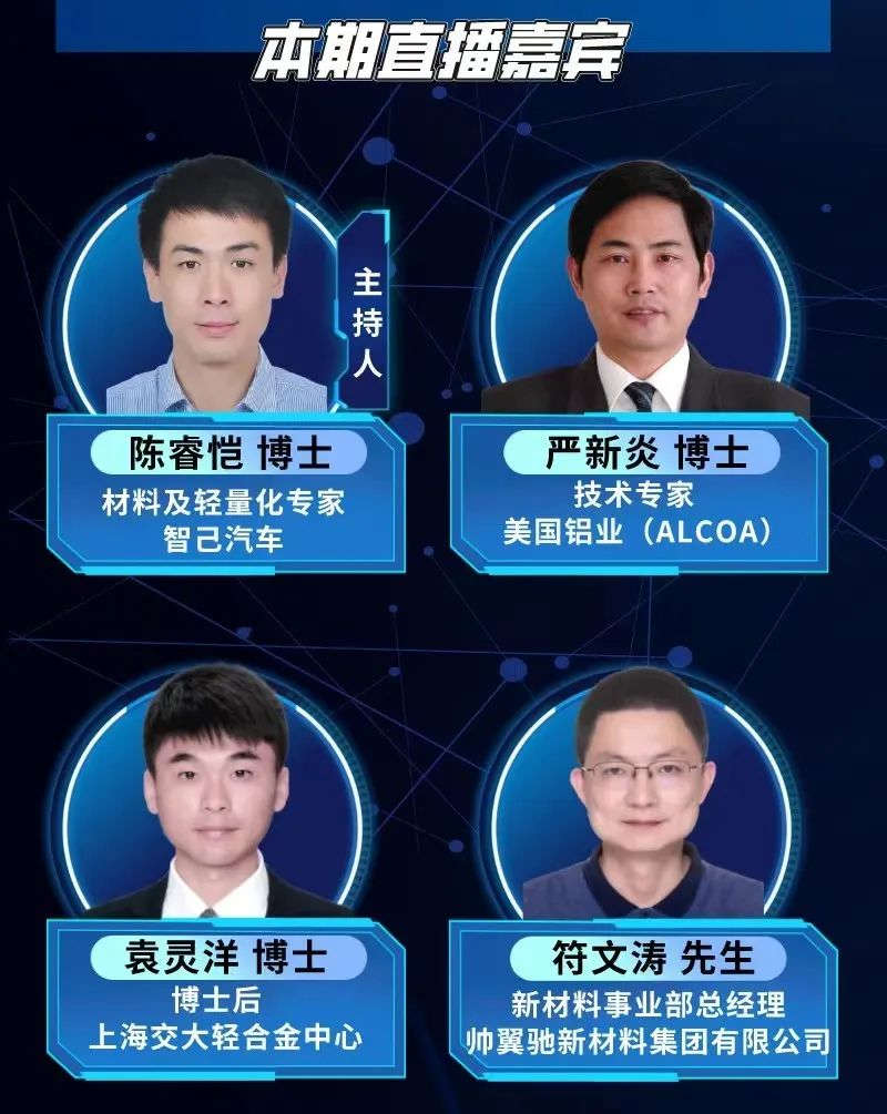 汽車鑄造俱樂部—大型一體化壓鑄 “一體壓鑄成型工藝”因其在輕量化、環保、成本方面的優勢脫穎而出,壓鑄行業又一次迎來了技術的顛覆,邁入“大壓鑄時代”,隨之而來的是裝備全面的革新。未來,隨著一體壓鑄應用范圍的不斷擴大,壓鑄工藝將有望取代傳統沖壓+焊裝工藝;同時,壓鑄在5G、醫療、建筑模板、智能化等新興應用領域不斷深入拓展,壓鑄市場未來可期。 值此背景下,由中國機械工程學會鑄造分會組織成立的“汽車鑄造俱樂部”啟動“對話大型一體化壓鑄”線上研討系列專題活動,邀請來自整車廠、解決方案提供商、跨界領域專家,從高端模具制造、先進材料研發、產品設計開發等方向,共同探討新能源汽車、輕量化及有色鑄造行業的發展路徑。 第二期直播帶來“對話大型一體化壓鑄—合金材料研發及應用專場”,將邀請智己汽車、美國鋁業、上海交大、帥翼馳等知名企業及單位,從多角度探討大型一體化壓鑄對合金材料的要求,免熱處理壓鑄材料的技術難點,材料品質管控流程,國內和國外使用的材料是否相同... ... ,5月20日(周五)晚19:00-21:00,您關注的大型一體化壓鑄材料相關問題,這里都有,歡迎前來直播間互動交流!