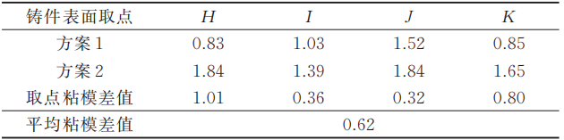 圖7 燒傷粘模對比圖 表3 取點燒傷粘模對比數據表