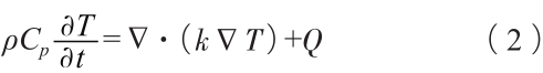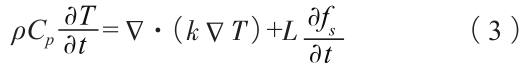 式中:Cp表示比熱容,T表示溫度,k表示導熱系數,Q表示熱源項。 凝固過程中,考慮到相變潛熱的釋放,采用潛熱模型(等效比熱容法)來描述液態金屬的凝固過程,其能量守恒方程如下: