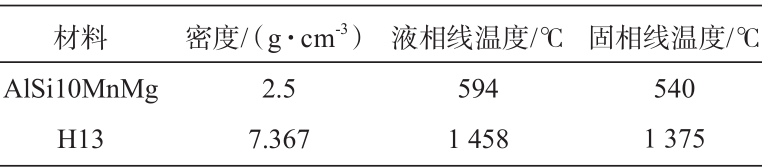 壓鑄工藝參數如表2所示,其中換熱模型為4D界面換熱模型,模型參數及取值分別為:擬合參數