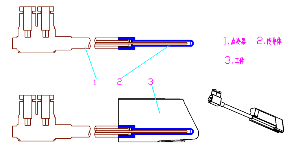 表1:不同材料的導熱性能對比 4、新型超點冷結構設計與驗證 根據(jù)試驗驗結果,選擇了一個模具鑲件進行具體驗證。模具上局部點冷設計示意圖見圖4