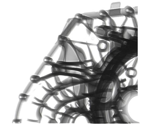 圖16:加長(zhǎng)高壓點(diǎn)冷針后X光 5、結(jié)束語(yǔ) 數(shù)值模擬能為鋁合金壓鑄件的質(zhì)量控制及缺陷改善提供良好的參考依據(jù);合理的高速切換點(diǎn)選擇對(duì)鑄件良好內(nèi)部質(zhì)量和表面成形良好都很重要,而高真空壓鑄對(duì)高速切換點(diǎn)有較大影響;型芯針的高壓冷卻解決了壓鑄件熱節(jié)處的縮孔缺陷,表面處理技術(shù)的運(yùn)用和合理的冷卻設(shè)計(jì)為獲得高質(zhì)量的鑄件提供了可靠的保障;合理修改鑄件結(jié)構(gòu)、減少加工余量對(duì)壓鑄品質(zhì)提升都有積極意義。