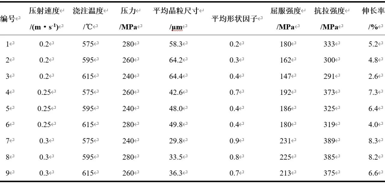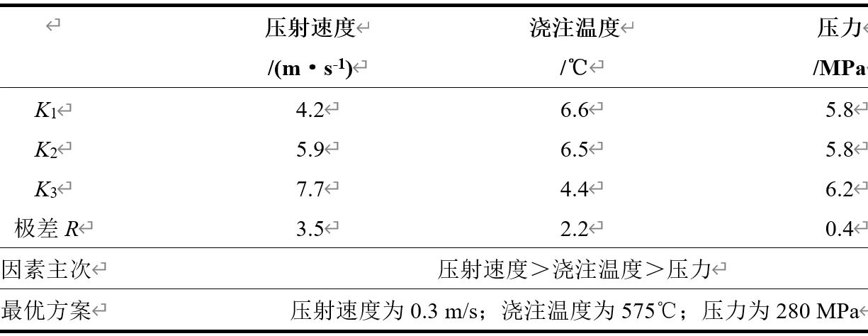 表3 Al-Si-Mg鋁合金半固態構件正交試驗方案與結果
