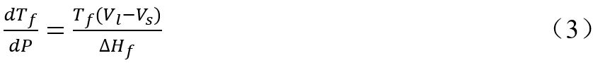 式中,P為合金所受壓力;Tf 為合金的平衡凝固溫度;Vl 、Vs分別為合金在液態和固態的比體積;?Hf 為比熱容