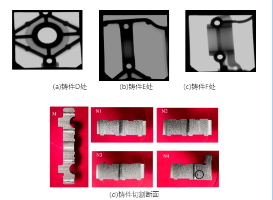 圖7 改進方案縮孔仿真結果與試模鑄件 圖8 鑄件缺陷檢測X光探傷