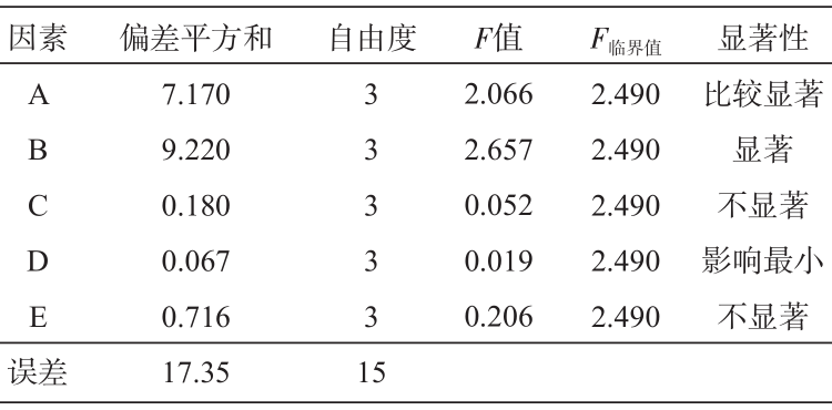 表4 L16(45)正交模擬試驗(yàn)結(jié)果