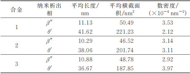 表4 高真空壓鑄Al-10Si-0.5Mn-0.4Mg-xCu合金T5態析出相統計結果 結論 (1)AlSi10CuMgMn合金的鑄態組織均由α-Al、共晶Si和α-Fe、Q和θ相組成。隨著Cu含量增加,Q相數量基本保持不變,形貌以層片狀為主;θ相數量則逐漸增多,形貌由分散的粒狀轉變成聚集的塊狀。 (2)T5熱處理對鑄態α-Al、共晶Si、α-Fe、Q和θ相的影響很小。峰值時效主要納米析出相為β″和θ′相,Cu含量較低時,析出相以β″為主;Cu含量較高時,析出相以θ′為主。
