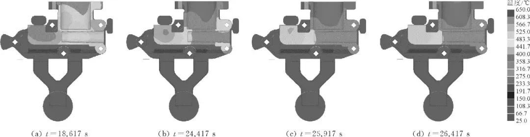 圖3 初始方案鑄件的溫度場模擬