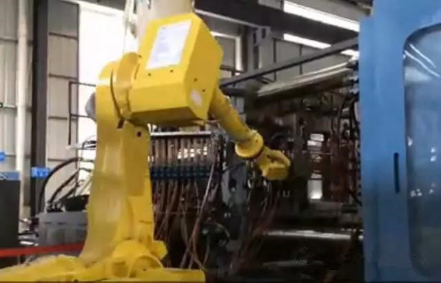 ![]() 目前在中國大陸主流鋁合金壓鑄機品牌普遍在600噸以下,按國產主流壓鑄機品牌供應商:力勁、伊之密、益格、仁興、銳達、捷迅、震高等提供的銷售資料統計,600噸以下的臺數在85%左右。傳統的壓鑄自動化普遍采用“三手”,即給湯機、噴霧機(伺服噴霧機或氣缸銅管噴霧機)、取件手(伺服或電動)的方式實現。 隨著90后年輕一代不愿進入壓鑄車間這樣艱苦危險的工作環境,傳統的三手壓鑄自動化對節省人工有限,且不具備通用性,產品的切邊去水口工作還需人工完成,壓鑄行業尤其是廣大民營企業的整體自動化程度不高,壓鑄行業的傳統自動化技術急需轉型升級,傳統三手使用3-5年也需要淘汰更新,壓鑄廠的企業主逐步將目光轉向機器人企業,想尋找一種更好的自動化方案以解決長期困擾的問題:如何接更高質量要求的壓鑄件訂單?如何留住年輕一代工人在壓鑄行業? 傳統的三手雖然解決了大部分的壓鑄自動化需求,解放了部分人工。但其推廣實施對產品有很大標準要求,不具備通用性。如產品壓鑄前要放預埋件就無法實現,在東莞曾有壓鑄廠操作工在放預埋件時,誤操作將整條手臂被模具夾碎。給個人和工廠造成了極大的損失。 對于復雜產品:如環形產品、深腔類產品、散熱片產品等,對于噴脫模劑和模具清理有特殊要求的,傳統伺服噴霧機因為缺乏靈活性,無法達到要求,壓鑄廠即使裝了伺服噴霧機也只能停下由人工操作,才能打出合格產品。但是人工操作有其不穩定性,每模噴的脫模劑和吹氣清理方式不一致,導致產品合格率偏低。 傳統噴霧機和取件手,其結構決定了摩擦副是無保護外露方式,潤滑很難保證。在壓鑄灰塵、水汽嚴重的環境,其使用壽命普遍在3-5年,且售后維護量大,壓鑄廠停用率較高。 針對傳統三手在壓鑄自動化領域的局限性,信騰機器人壓鑄自動化事業部推出了與傳統三手接近市場價格的關節機器人自動化解決方案。采用壓鑄關節機器人方案不僅能覆蓋傳統三手的功能,還能彌補傳統三手的缺陷。 針對不同壓鑄企業對壓鑄自動化程度的不同要求,信騰機器人提供了最基本的五種解決方案: 一、采用機器人取噴一體的方式,產品取出后放入傳輸線,由人工完成清理渣包水口。特點:適合于深腔、異形零件,不方便采用切邊機去水口渣包的產品。如下圖: