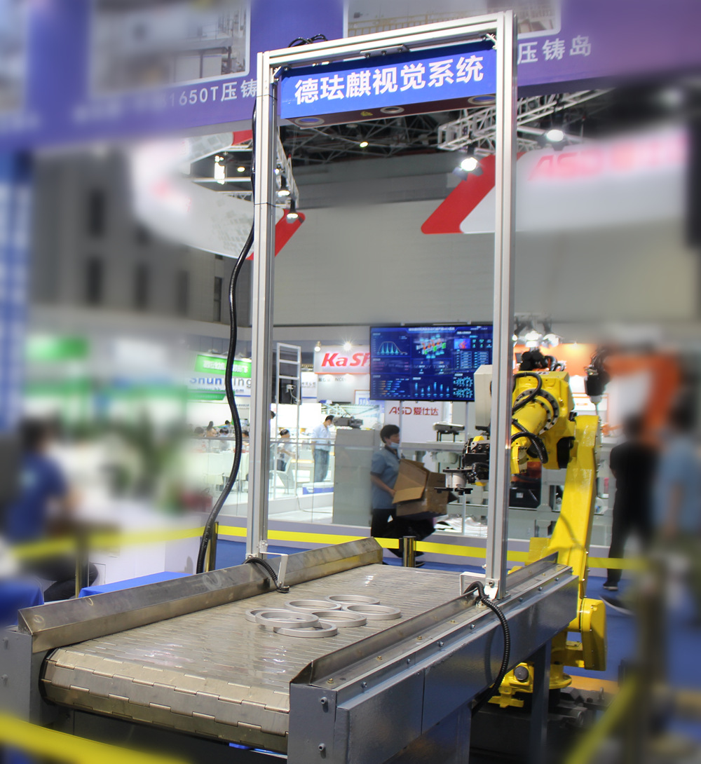 獲獎牌匾和證書 另外,廣州德琺麒展示的機器人取件激光視覺系統,是壓鑄島關鍵技術之一。據介紹,該激光視覺系統仿佛為取件機器人裝上眼睛,定位精準,無論鑄件半徑范圍內的在任何位置,機器人均可輕松抓取。為壓鑄島的自動化生產提高了效率。