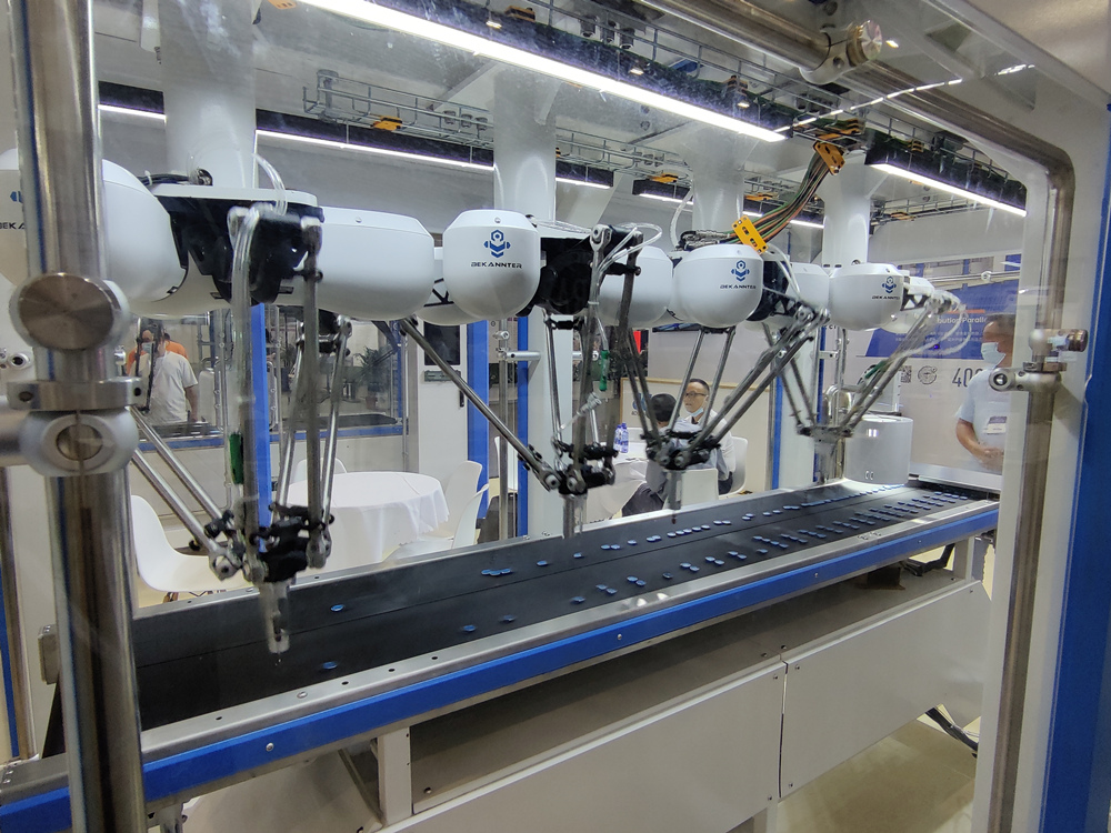 傅儉先生還介紹,并聯(lián)機(jī)器人作為工業(yè)機(jī)器人行業(yè)的一個(gè)細(xì)分領(lǐng)域,在一些行業(yè)有著不可替代的作用,比如對(duì)衛(wèi)生條件有嚴(yán)格要求的食品、醫(yī)療行業(yè)。勃肯特的產(chǎn)品可在無(wú)菌環(huán)境下工作,實(shí)現(xiàn)自動(dòng)化、無(wú)人化生產(chǎn),在降低食品藥品安全風(fēng)險(xiǎn)的同時(shí),還能提高生產(chǎn)效率,保證生產(chǎn)質(zhì)量和食品衛(wèi)生安全。
