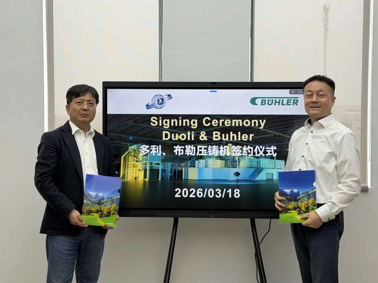 多利科技與布勒集團完成新訂單簽約,將再度引進包含 Carat 920、Carat 720 機型在內的多套大型一體化壓鑄島。