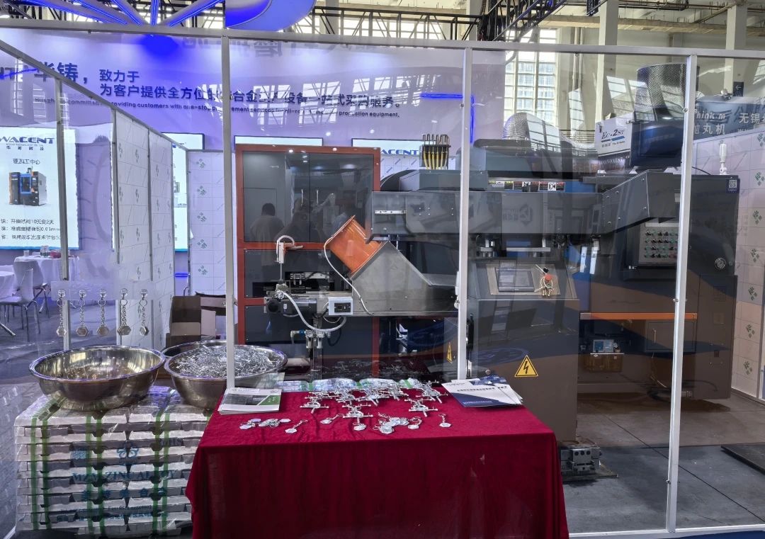 ![]() 2025年4月21-23日,“2025寧波國(guó)際鑄造及壓鑄展”在寧波國(guó)際會(huì)展中心成功舉辦。本屆展會(huì)吸引了來(lái)自全國(guó)各地的鑄造及壓鑄產(chǎn)業(yè)鏈上下游企業(yè)積極參展,集中展示了各企業(yè)的創(chuàng)新產(chǎn)品及技術(shù)成果。 華鑄科技:推介鋅壓鑄一站式設(shè)備采購(gòu)及全套生產(chǎn)解決方案 在本屆展會(huì)上,廣東華鑄模具科技有限公司(簡(jiǎn)稱“華鑄科技”)現(xiàn)場(chǎng)展示了一條38T無(wú)料咀熱室壓鑄自動(dòng)化(閉環(huán))產(chǎn)線,以及一臺(tái)型號(hào)為160T30的多用途標(biāo)準(zhǔn)熱室壓鑄機(jī)。 據(jù)了解,這條38T自動(dòng)化熱室壓鑄生產(chǎn)線是專為黑燈工廠設(shè)計(jì)的。它以一臺(tái)38T無(wú)料咀熱室機(jī)為主機(jī),配備了華鑄科技自主開發(fā)的高速取件機(jī)、水口自動(dòng)分離系統(tǒng)、水口料回爐重熔系統(tǒng)以及輸送帶,形成了一條閉環(huán)的全自動(dòng)化熱室壓鑄生產(chǎn)線。在展會(huì)現(xiàn)場(chǎng),該生產(chǎn)線搭配華鑄科技的“1 + N”模具技術(shù),用于生產(chǎn)鋅合金產(chǎn)品。