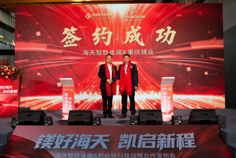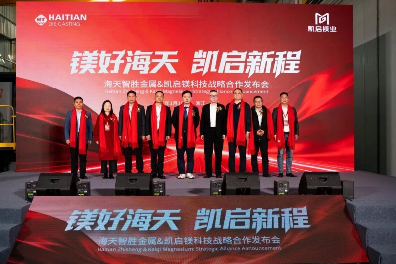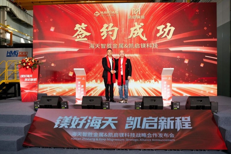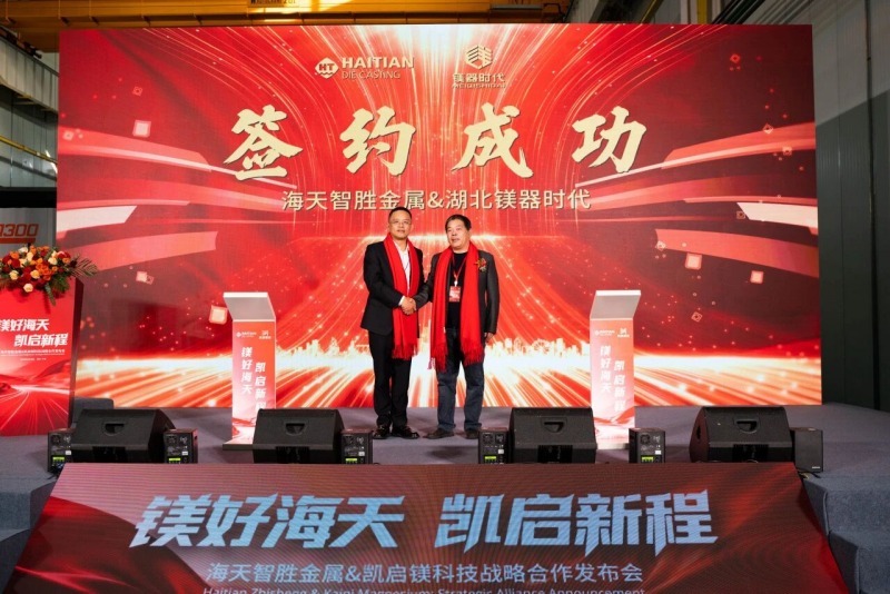 ![]() 1月16日,海天智勝金屬與寧波凱啟鎂科技有限公司(下稱“凱啟鎂科技”)簽署戰(zhàn)略合作協(xié)議,雙方將在產(chǎn)能、技術(shù)、產(chǎn)業(yè)三大維度深化協(xié)同。同期,海天智勝金屬還與重慶鎂業(yè)、湖北鎂器時(shí)代等企業(yè)達(dá)成多項(xiàng)合作,覆蓋產(chǎn)業(yè)鏈關(guān)鍵環(huán)節(jié),為鎂合金產(chǎn)業(yè)高質(zhì)量發(fā)展注入強(qiáng)勁動(dòng)能。 鄞州經(jīng)濟(jì)開發(fā)區(qū)管委會(huì)副主任勵(lì)勇,海天集團(tuán)總裁張斌,凱啟鎂科技總經(jīng)理朱國棟,重慶鎂業(yè)科技總經(jīng)理黃勝宇,湖北鎂器時(shí)代副總經(jīng)理?xiàng)铈L熘莿俳饘俑笨偨?jīng)理洪劍文等多方企業(yè)高層,以及合作代表、媒體嘉賓等共同見證了這一重要時(shí)刻。 戰(zhàn)略發(fā)聲,奠定鎂合金產(chǎn)業(yè)發(fā)展新格局