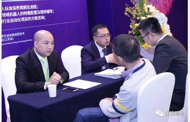 現場咨詢交流 隨著制造成本上漲,壓鑄行業邁入機器人自動化時代。本次研討會也聚焦“工業機器人”話題,邀請了多位重量級專家,分享了壓鑄機器人自動化應用方案等案例,其中機器人領域資深專家、蘇州大學青年副教授陳國棟帶來了《工業機器人核心技術及加工中心機器人上下料、壓鑄件機器人打磨去毛刺的技術應用案例》,以及介紹了蘇州伊之密機器人研究院的規劃。
