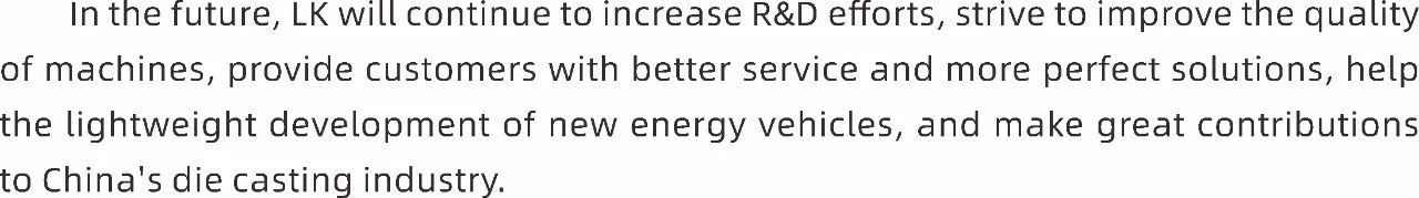 未來,力勁將持續加大研發力度,努力提高機器品質,為客戶提供更優質的服務及更完善的解決方案,助力新能源汽車輕量化發展,為中國壓鑄行業作出力勁貢獻。