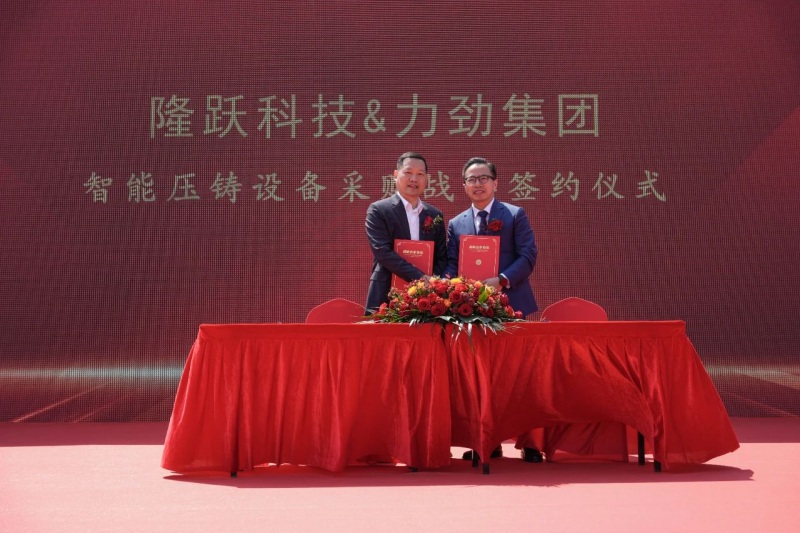 在奠基儀式上,隆躍科技攜手力勁集團舉行了智能壓鑄設備采購戰略簽約儀式。