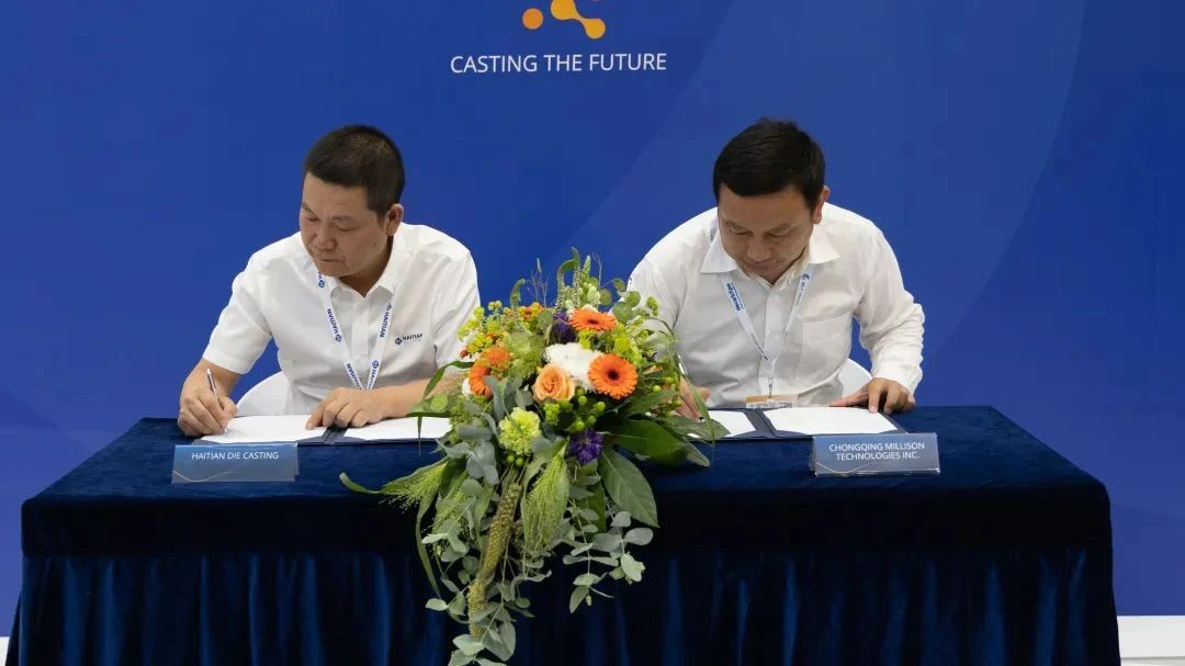 GIFA 2023,海天金屬與精確實業(UATE)、日本OKAYA & Co, LTD、美利信科技等三家國際知名企業達成戰略合作協議 據了解,精確實業是全球知名汽車零部件廠家敏實集團旗下成員,后者為全球30多個國家的60多個汽車品牌提供服務。OKAYA & Co, LTD則是一家總部位于日本的世界知名貿易公司,在長期與日本汽車制造商的合作中有著豐富的經驗。未來,海天金屬將與各方將利用市場協同效應和規模化資源,共同開拓更廣闊的國際市場。 而海天金屬與重慶美利信科技簽署全球戰略合作協議,在GIFA這個國際舞臺向全世界宣布:雙方將聯合開發合模力20000T超大型壓鑄機,并在大型及超大型一體化壓鑄領域展開研發技術合作,實現成果共享。 ??大型及一體化壓鑄,千載難逢歷史機遇 隨著新能源汽車、汽車“輕量化”趨勢加速向前推進,一體化壓鑄正逐步被全球整車廠認可。海天金屬充分把握市場需求,先后推出7000T、8800T超大型壓鑄機,打造配套2500T、3500T大型壓鑄島和8800T超大型壓鑄島的全球應用服務中心,切實助力行業發展,填補一體化上下游產業空缺,為客戶提供全套解決方案、一體化試模等服務。