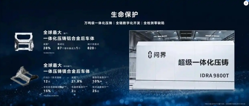 問界M9:搭載9000T一體壓鑄后車體和多個一體化壓鑄車身