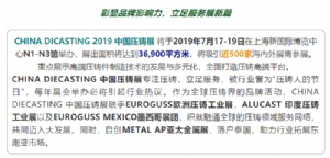 CHINA DIECASTING 2019中國壓鑄展和CHINA NONFERROUS 2019中國有色展,將于2019年7月17-19日在上海新國際博覽中心舉行。