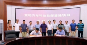 安徽亞明汽車科技有限公司與蕪湖市三山區人民政府就亞明汽車科技總部基地項目簽訂合作協議,簽約項目落戶三山經濟開發區。