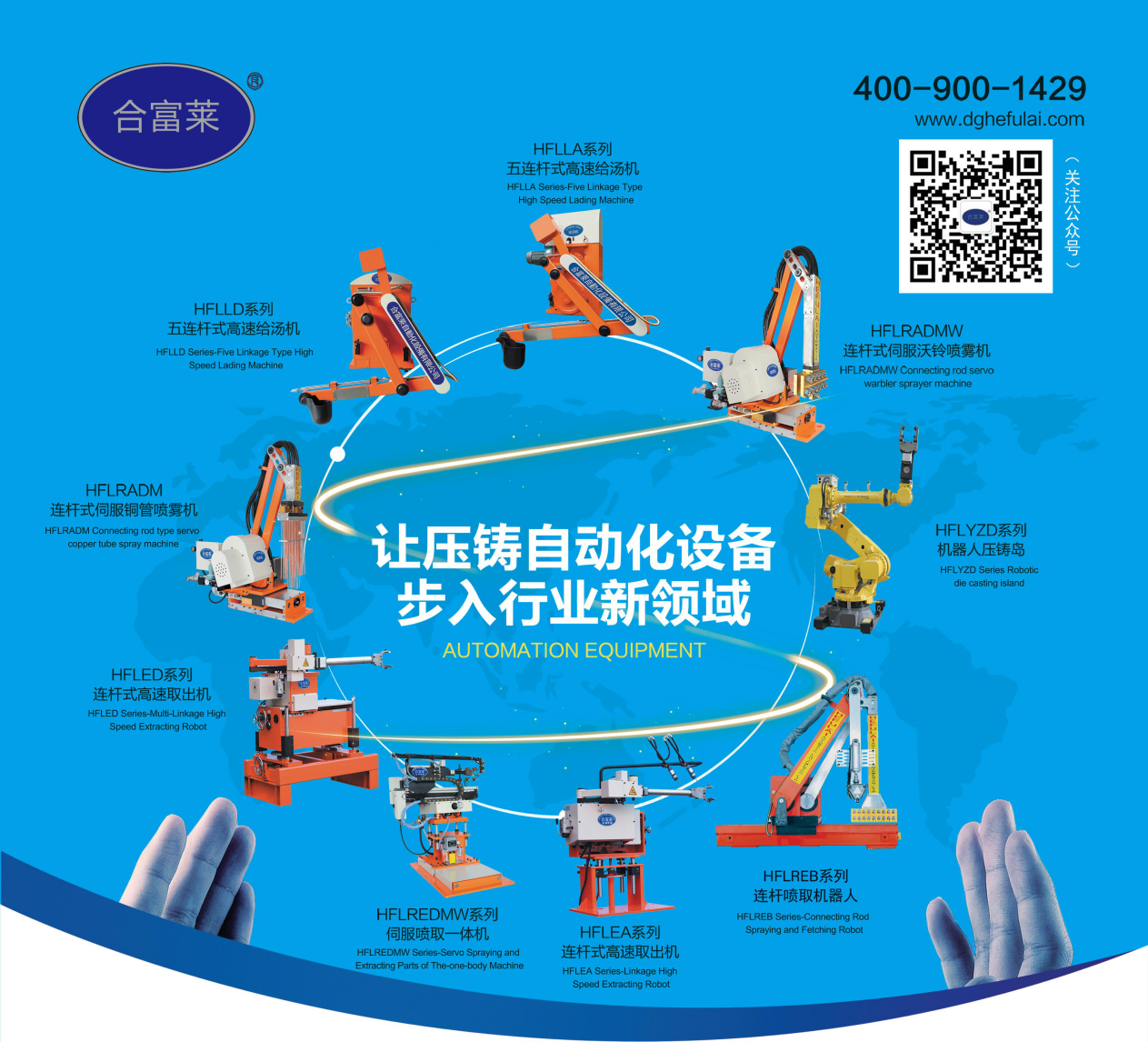 近年來,伴隨中國壓鑄產(chǎn)業(yè)逆勢成長與發(fā)展,合富萊公司在行業(yè)同仁支持和幫助下迅速成長,已發(fā)展成為壓鑄周邊自動化設(shè)備領(lǐng)域主流品牌。