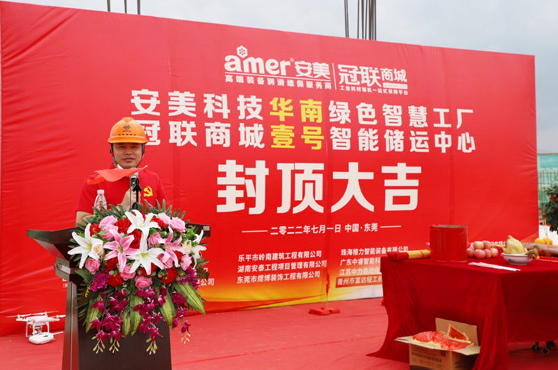 7月1日,坐落于東莞松山湖東部科技園安美科技廣東第二生產基地華南綠色智慧工廠、冠聯商城壹號智能儲運中心舉行封頂儀式。