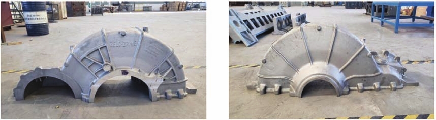 通過開設排氣渣通道、提高澆注溫度、降低澆注速度、增加頂部安裝邊、使用冷鐵和石墨及鉻鐵礦砂對鑄件進行整體激冷等工藝措施,解決了基座鑄件內部的諸多缺陷,生產出了合格的ZL205A中大型基座鑄件。
