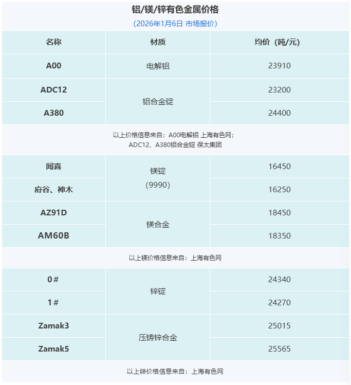 壓鑄早報2026/1/7星期三