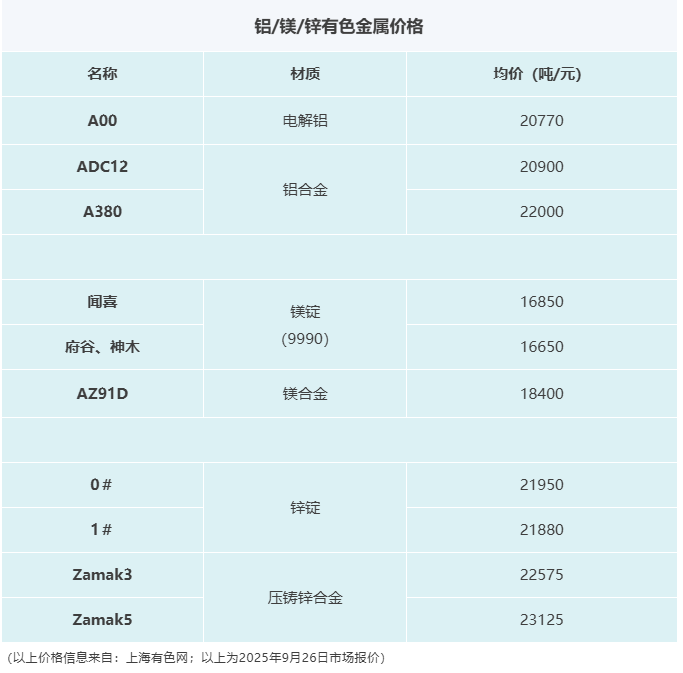壓鑄早報2025/9/29星期一