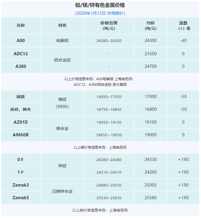 壓鑄早報2026/1/14星期三