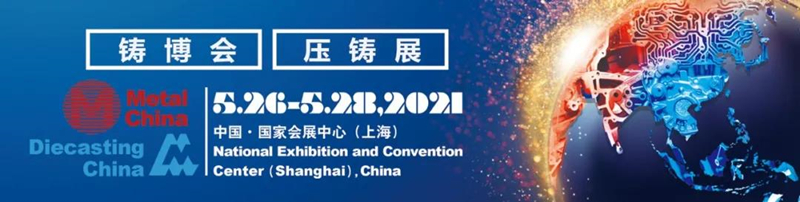 第十九屆中國國際鑄造博覽會、第十五屆中國國際壓鑄工業展覽會&第十五屆國際有色及特種鑄造展覽會將于2021年5月26-28日在上海虹橋展館舉辦。