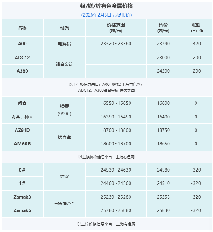 晉拓股份墨西哥壓鑄工廠啟動試生產;寶武鎂業:聯營公司安徽寶鎂新建項目處于投產爬坡階段;隆源股份2025年營收增長18.05%;怡球資源2025年預計凈利最高至1.99億元。