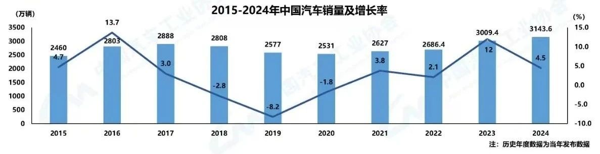 我國(guó)2024年汽車(chē)產(chǎn)銷(xiāo)量分別達(dá)到了3128.2萬(wàn)輛和3143.6萬(wàn)輛,同比分別增長(zhǎng)3.7%和4.5%。