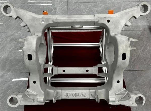 湖州美邁科技有限公司采用3D打印結(jié)合鑄造技術(shù)和專用鋁合金材料,試制出新能源汽車副車架成品。
