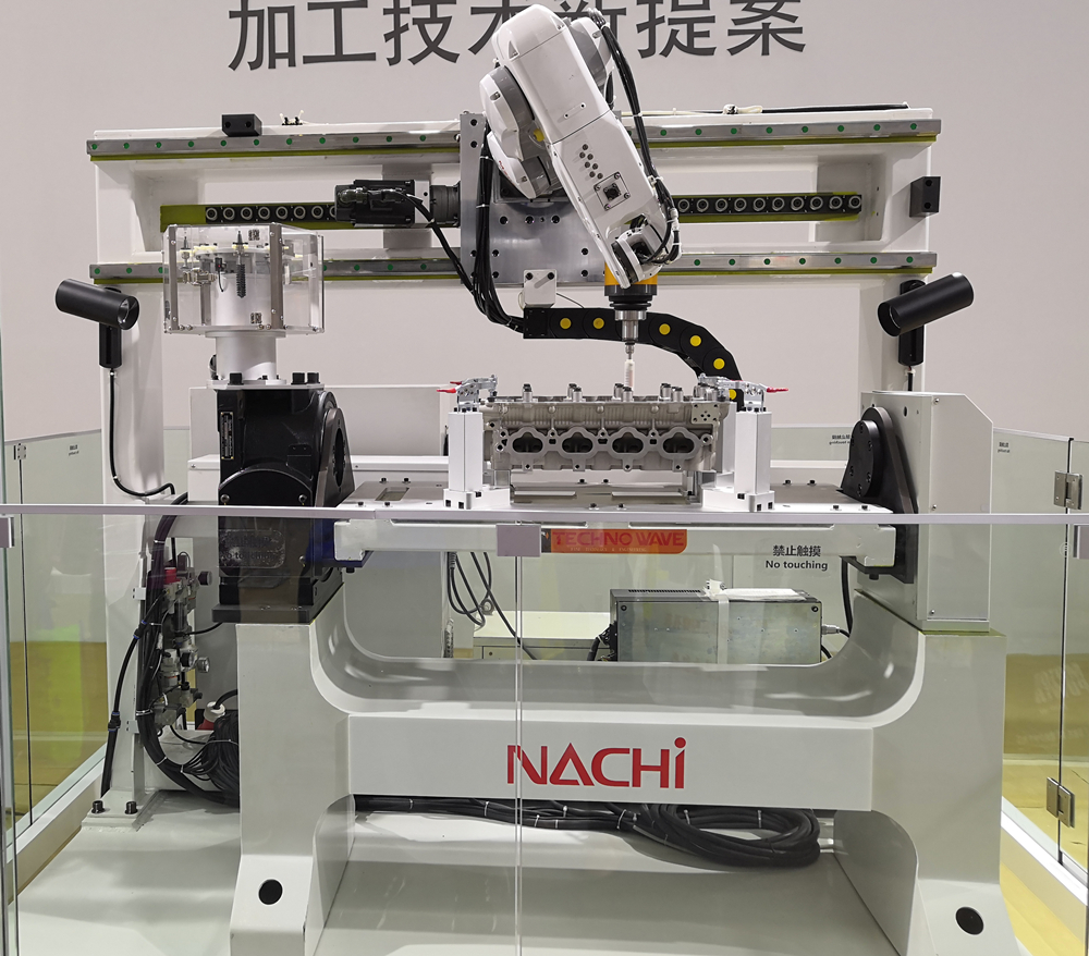 廣州太威通過式輪轂去毛刺標準機 柔性去毛刺加工中心,是廣州太威今年最新開發的產品,主要面向發動機缸體、缸蓋等大尺寸零部件。該機采用MZ07/MZ10輕負載機器人,速度快,精度高。行走軸機構,設計零背凸輪結構,擴大加工范圍,搭配A軸翻轉機構,工件6個面均可以去毛刺加工。其采用自動切換浮動主軸和刀庫,針對復雜多樣的毛刺可通過快速切換刀具來實現加工。