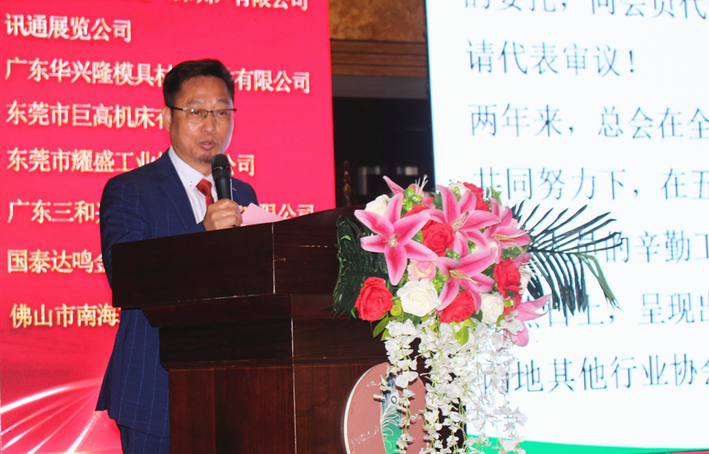 蔡子芳先生為贊助商代表頒發(fā)禮品 本屆會(huì)員大會(huì)得以成功召開,離不開各家贊助商的鼎力支持。感謝贊助本次大會(huì)的九家企業(yè):順景園精密鑄造(深圳)有限公司、廣東華興隆模具材料科技有限公司、東莞市巨高機(jī)床有限公司、東莞市耀盛工業(yè)爐有限公司、廣東三和興模具材料科技有限公司、國泰達(dá)鳴金屬制品廠有限公司、佛山市南海雄新壓鑄有限公司。總會(huì)會(huì)長蔡子芳先生上臺(tái)為各家贊助商代表頒發(fā)紀(jì)念禮品。