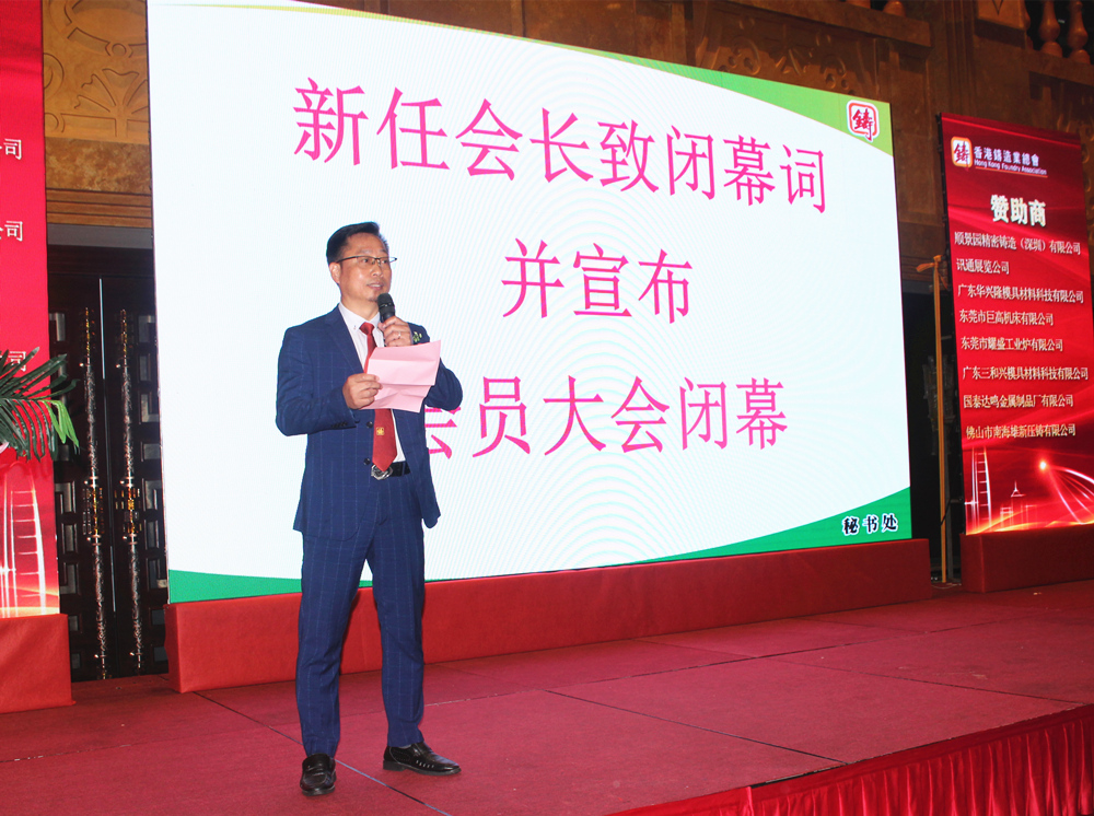 順景園精密鑄造(深圳)有限公司蔡子芳先生連任香港鑄造業(yè)總會(huì)新一屆會(huì)長。蔡子芳會(huì)長現(xiàn)場(chǎng)發(fā)表了熱情洋溢的當(dāng)選感言。隨后,會(huì)員代表大會(huì)宣告結(jié)束,主辦方安排了豐盛的慶祝晚宴。
