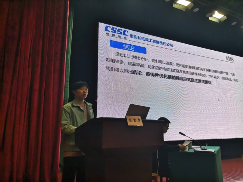 重慶慶鈴鑄鋁有限公司雷陽陽先生以《關(guān)于重力澆注管類件管壁疏松泄漏、內(nèi)部孔洞缺陷的原因分析與解決措施》為題作報(bào)告