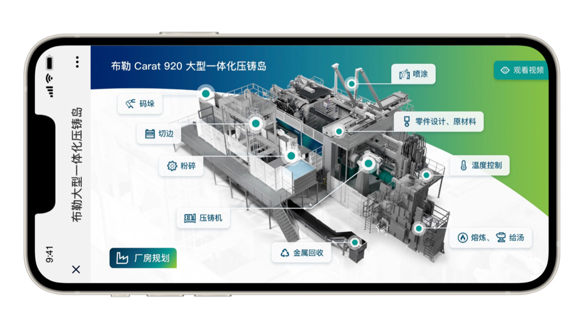 布勒Carat610壓鑄機 第二是方案。布勒不僅提供壓鑄機,還提供針對大型一體化壓鑄的整體解決方案。制造業(yè)最終是成本與效率的比拼,過大的壓鑄件體積和重量迫使6000T以上壓鑄島擁有更高的自動化和集成度,布勒對此推出了定制化的解決方案。