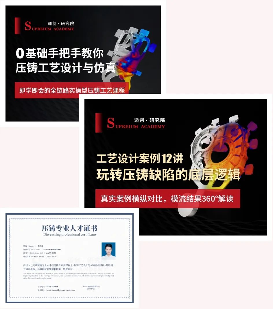 壓鑄人參加培訓的原動力是什么?在適創研究院的調查中,不少從業者表示,他們很愿意參加有著明確“目標感”的學習課程,例如熟練掌握一款軟件,獲得一份認證證書,拓寬知識面,提升自己的職業競爭力;同時,拓展行業社交圈,獲得更多與同行交流的機會也是大家參加培訓時非常看重的一個因素。這也顯示了壓鑄訓練營基于6年從業經歷總結出的課程教學,受到了壓鑄人的初步認可。 適創研究院,由北京適創科技有限公司高級應用工程師及技術專家團隊組建,面向壓鑄行業開展專業的壓鑄技術及仿真應用技能培訓,提供獨家壓鑄書籍,傳播壓鑄知識,致力于為壓鑄人打造最實用、最全面、最專業的學習成長及職業發展體系。