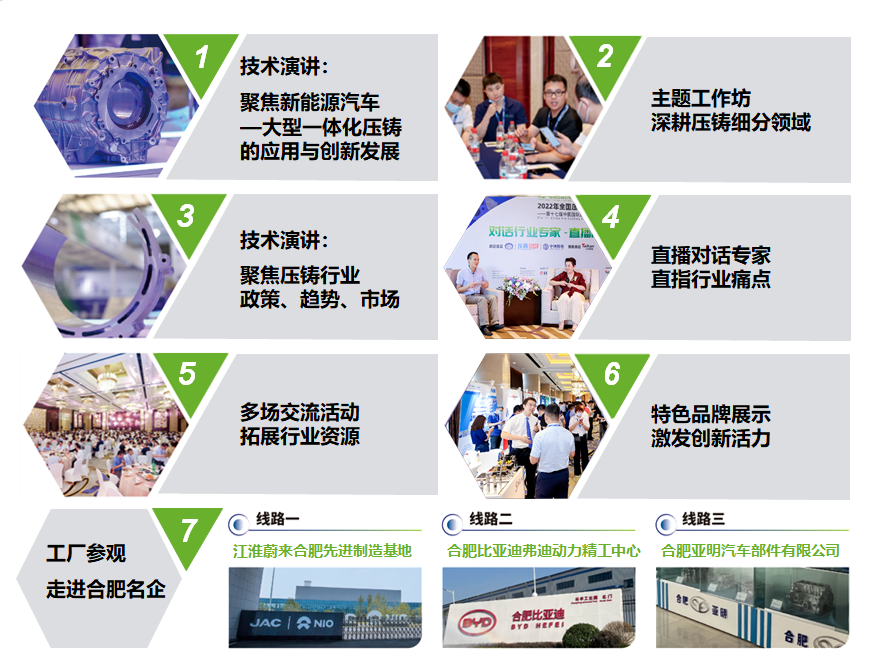 ![]() 上屆“全國壓鑄年會”現場 2023年3月22-24日,一年一度壓鑄行業盛會——“全國壓鑄行業年會暨中國國際壓鑄會議”,將在合肥香格里拉大酒店舉行。本屆年會,將聚焦壓鑄行業政策、趨勢、市場,新能源汽車、大型一體化壓鑄等話題,配套多元同期活動,與壓鑄同仁共同探討壓鑄產業鏈解決方案及發展方向。 新能源汽車制造領航大壓鑄時代 本屆年會以 “新能源汽車制造領航大壓鑄時代”為主題,呼應當前汽車制造業及壓鑄產業的發展趨勢。中國汽車工業協會數據顯示,近年來,我國新能源汽車產業實現高速發展。在政策和市場的雙重作用下,新能源汽車市場一路狂飆,2021-2022年,新能源汽車的銷量分別為352.1萬輛和688.7萬輛,同比增長169.1%和93.4%。,市場占有率已達到 25.6%。 新能源汽車快速發展,給壓鑄行業發展帶來新機遇。新能源汽車“電池、電機、電控”三電系統,尤其是汽車底盤結構件,廣泛使用鋁、鎂合金輕量化壓鑄件和一體化壓鑄件。這標志著以一體化壓鑄為核心的“大壓鑄時代”已經來臨。近年來,壓鑄產業鏈上下游企業紛紛布局“一體化壓鑄”市場,上游配套商在超大型壓鑄機、免熱處理材料、超大型模具等方面持續攻關發力,下游壓鑄件生產商在超大型一體化壓鑄底盤結構件方面不斷試產和應用。經過前期的產業布局和技術工藝積累開發,2023年我國將迎來“一體化壓鑄”的集中量產年。 安徽省新能源汽車及壓鑄產業朝氣蓬勃 本屆年會首次選址安徽合肥,是主辦方基于安徽省新能源汽車及輕量化壓鑄行業一片欣欣向榮的產業基礎。近年來,安徽省新能源汽車產業快速崛起,以蔚來、比亞迪為代表的一批新能源汽車龍頭“搶灘登陸”,催生出巨大的汽車零部件需求市場,也促進了該地區輕量化鋁合金鑄造汽車零部件產業的蓬勃發展。與此同時,安徽省,地處長三角,位于中原腹地,與經濟發達省份江蘇、浙江接壤,地理位置優越、交通便捷,承接來自全國各地的壓鑄產能轉移,成為近年壓鑄行業企業投資的最熱門地區。 汽車零部件知名企業如文燦集團、拓普集團、愛柯迪、大連亞明、天津艾斯迪、宜安科技、福然德/優尼科、泉峰汽車、無錫貝斯特、無錫明豪、萬安科技、多利科技、偉源科技、蘇州三基;壓鑄機龍頭有力勁集團;壓鑄模具企業有鑫林模具;鋁合金材料龍頭有帥翼馳、重慶順博、立中集團、華勁鋁業;鎂合金汽配企業有云海金屬、寶鋼金屬、青海特立鎂等,先后在安徽合肥、馬鞍山、六安、滁州、蕪湖、宣城等地投資壓鑄上下游產業項目。 除了安徽全省各地壓鑄項目投資遍地開發之外,作為省會城市的合肥,更是勠力打造未來新能源汽車之都。近年來,合肥新能源產業迅速崛起,已發展為極具影響力的新能源汽車制造基地,合肥新能源產業正在迅速集群,已聚集規上企業300多家,包括比亞迪、蔚來、大眾(安徽)、合肥長安、安凱汽車等6家整車制造企業,壓鑄零部件等配套企業也紛紛向合肥靠攏。 2023年全國壓鑄行業年會暨第十八屆中國國際壓鑄會議,將成為壓鑄行業交流與合作的“饕餮盛宴”。《壓鑄周刊》記者從主辦方獲悉,本屆大會報告聚焦壓鑄行業分析、產品開發及集成計算材料工程、合金材料開發及應用、高端模具制造技術、智能制造與精益管理、超大型壓鑄裝備及集成技術等多熱點議題,邀請知名行業專家、學者進行現場分享。與此同時,主辦方還將安排主題工作坊、特色品牌展示、對話行業專家、鑄造企業參觀等精彩的同期活動,與大會相得益彰。