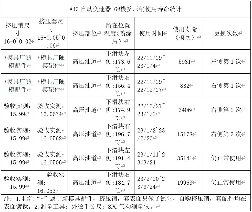 1)下“表4”是自動(dòng)變速器左箱體模具擠壓銷的運(yùn)用情況