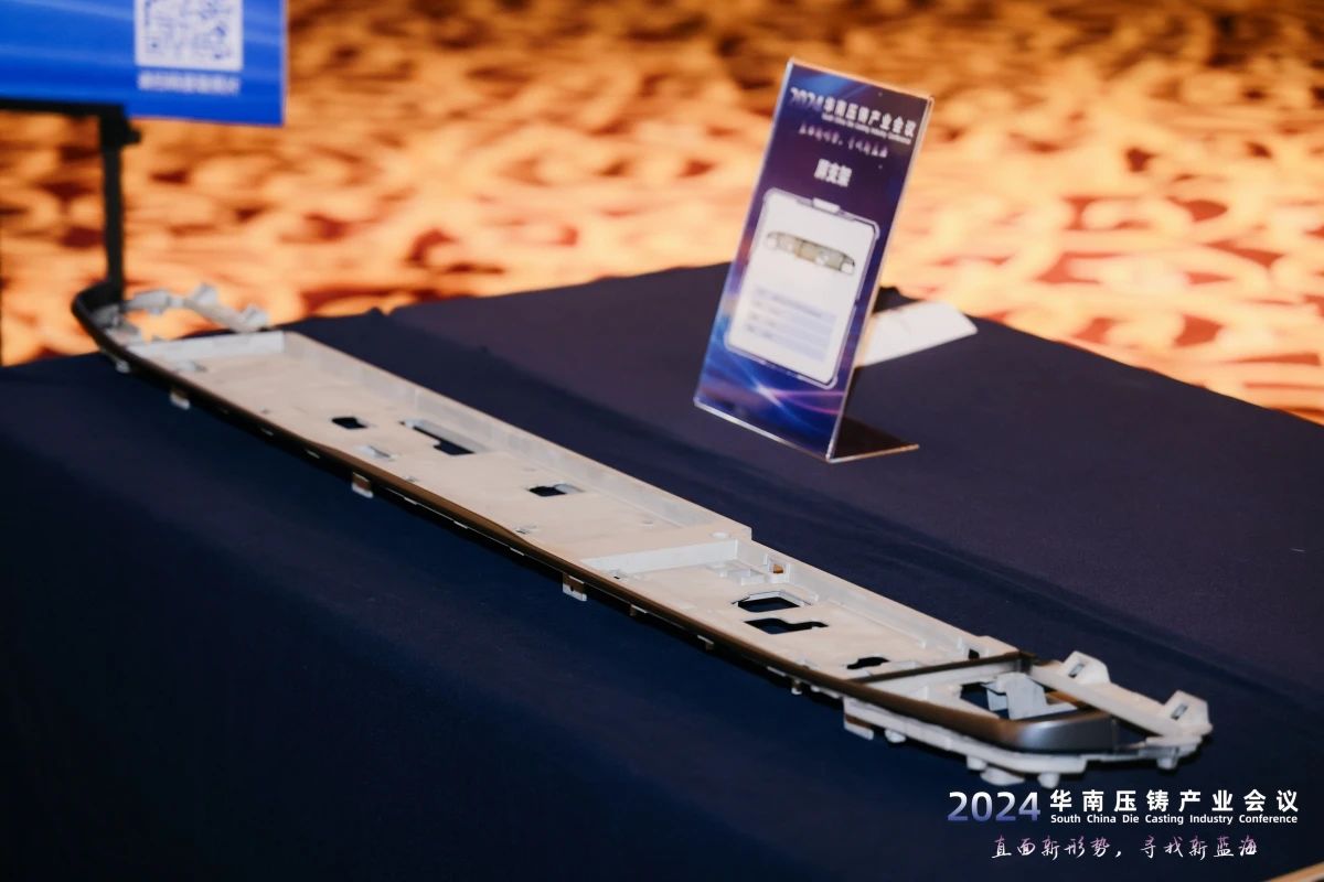 海天智勝金屬 鑄件展示 Casting Display 值得一提的是,某汽車的“電池車身一體化整體底盤壓鑄件”在大會上驚艷亮相,這也是該大型鋁合金壓鑄件首次在華南地區展出。此件乃迄今為止世界上尺寸最大、重量最重的鋁合金壓鑄件,在現場引起了參會嘉賓的極大興趣,引發了參會嘉賓的廣泛關注與熱議。現場一同展出的還有宜安科技多款鎂合金壓鑄件,包括:(汽車)顯示屏支架、電機殼體、扶手箱支架、電池托盤以及筆記本電腦殼體等。