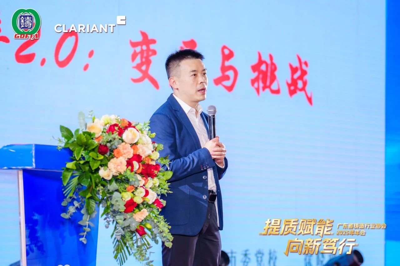 廣東省鑄造行業協會會長何桂景先生致辭 在此背景下,本次論壇以“提質賦能·向新篤行”為主題,旨在凝聚行業共識。其中,“提質”是行業的立足之本,需通過精益管理和工藝革新來筑牢質量根基;“賦能”則是破局的關鍵,需借助數字化、智能化手段激活全要素效能;“向新篤行”則是行業長遠發展的必由之路,需在綠色轉型和技術創新中不斷開辟新賽道。