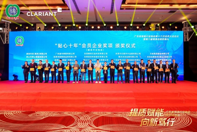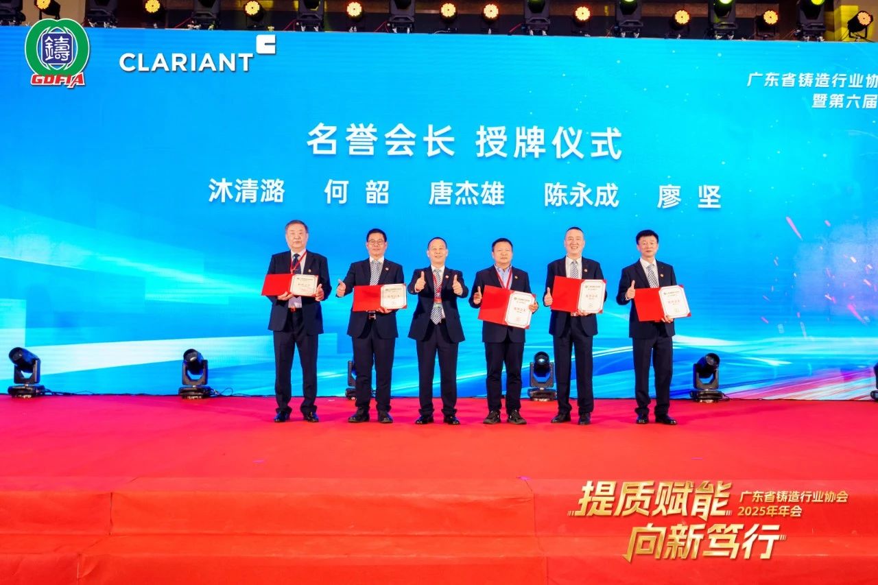 本次大會的成功舉辦,離不開眾多贊助商的慷慨解囊與鼎力支持。主辦方特別感謝本次春茗晚宴獨家冠名單位科萊恩化工科技(上海)有限公司。金牌贊助商廣東揚山聯合精密制造股份有限公司、嘉瑞科技(惠州)有限公司、廣東雄新壓鑄有限公司、廣東金志利科技股份有限公司、廣東省鑄力鑄材科技有限公司、伊之密股份有限公司、佛山市南海區晉遠達焦鐵有限公司、湖南鑫泉科技有限公司、廣東中天創展球鐵有限公司、宏豐金屬制品(惠州)有限公司、禹州市恒利來新材料股份有限公司、廣東肇慶動力金屬股份有限公司。銀牌贊助商東莞市新盛金屬制品有限公司、廣東九本金屬材料股份有限公司、東莞市石碣華豐金屬有限公司、廣州三和再生資源有限公司、中山市潤興再生資源回收有限公司、江門市漢智新材料有限公司、趙海東課題組、肇慶美萊達新材料有限公司、肇慶市飛亞實業有限公司、廣州海購新材料有限公司。主辦方為他們頒發了紀念獎牌。