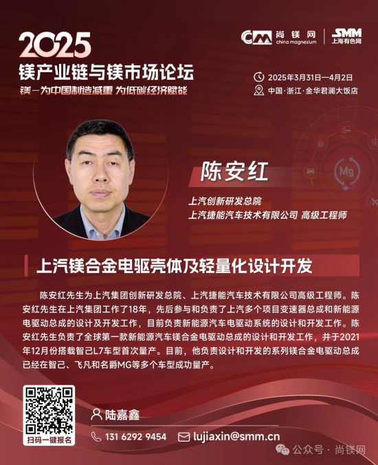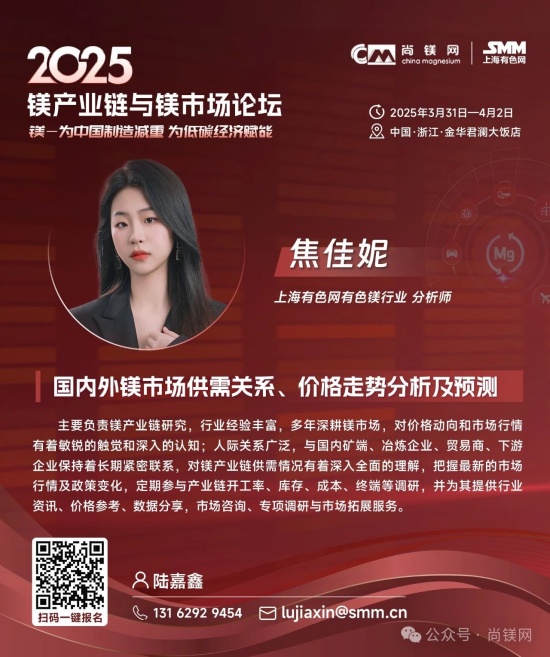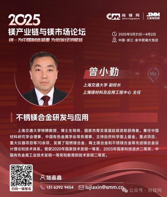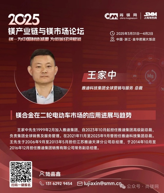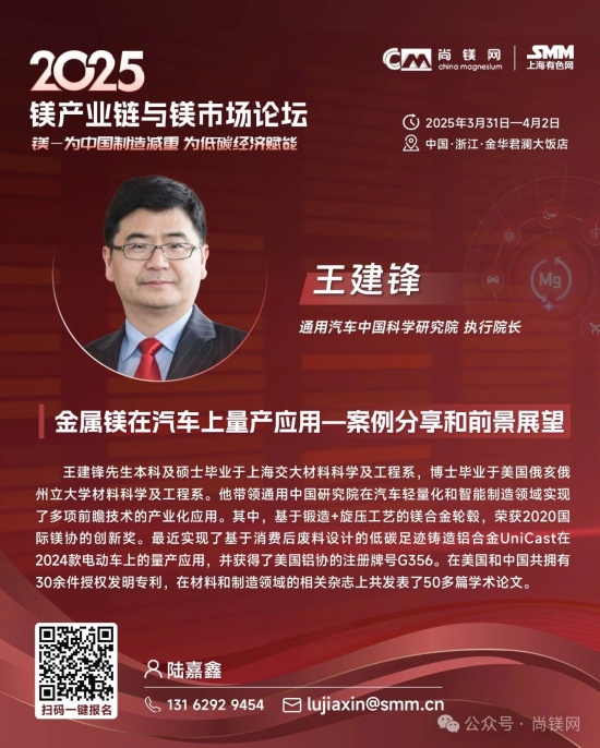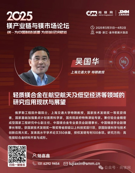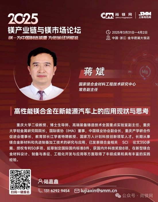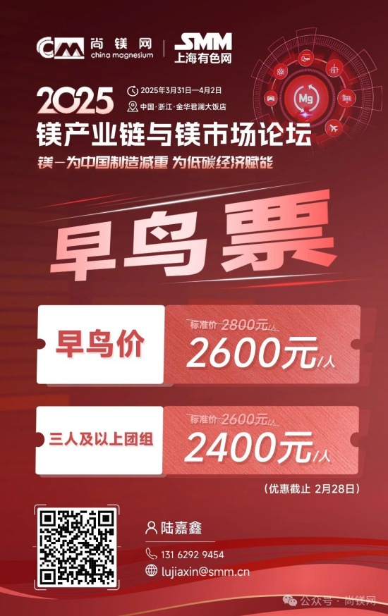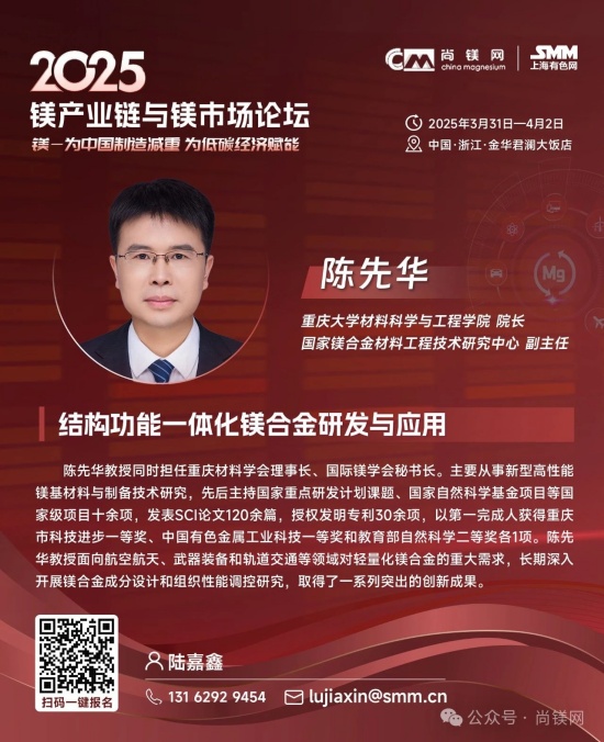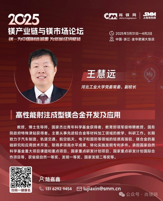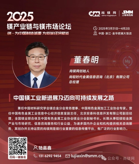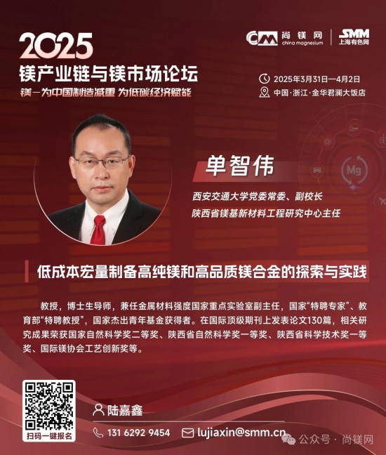 同時,考量鎂鋁比價關系及走勢及制訂材料選型替代戰略,還要更多的關注鋁及其他相關原材料市場的形勢。值得關注的是,2024年,受資源條件約束、環保及安全生產等因素影響,國內鋁土礦產量降幅進一步擴大。受此影響,國內氧化鋁企業加大進口鋁土礦使用量,鋁土礦進口再創新高,2024全年進口量達到1.56億噸。同時,鋁土礦進口價格不斷攀升,進口均價同比上漲8.4%,創近20年新高。因國產鋁土礦供應下降,國內鋁土礦資源對外依存度上升至68%,較上年提高6個百分點。而我國鎂的資源狀況極佳,不僅完全不需要進口鎂資源和鎂金屬,中國鎂產量占世界總產量的比例超過86%,具有明顯的資源優勢、產業優勢、供應優勢和價格優勢。 這一系列形勢應該能引發產業界進一步思考,在原材料風險評估和材料選擇時,要更加關注資源和原材料供應的可靠性及供應鏈的安全性問題,要更多的從戰略高度和商業角度考慮如金屬鎂這樣的國內資源保證條件好的資源與材料的應用,加大對此類產業和產業鏈的支持力度,從戰略高度增強信任,構建新型商業合作關系,構建更加穩固可靠的新型和優勢產業鏈。 中央經濟工作會議突出強調:“要更好統籌發展和安全,必須統籌好總供給和總需求的關系,暢通國民經濟循環。必須統籌好培育新動能和更新舊動能的關系,因地制宜發展新質生產力。必須統籌好做優增量和盤活存量的關系,全面提高資源配置效率。必須統籌好提升質量和做大總量的關系,夯實中國式現代化的物質基礎。” 結合當前鎂行業及鎂市場形勢,我們認為,在2025年要重點抓好金屬鎂的規?;瘧眠@一大課題,這不僅是有效解決當前行業困境的當務之急,也是貫徹落實中央經濟工作會議精神,統籌發展和安全、提高資源配置效率、擴大內需,更新舊動能和培育新動能的重要行動措施。金屬鎂作為輕量化結構材料和功能材料,在推動綠色低碳、高質量發展中將發揮重要作用,展現更大作為。目前,開展這項工作的環境和條件已經基本具備,重點和方向也已經明晰,所要做的就是凝心聚力,努力實踐了! 我們相信,鎂市場需要決定性力量,決定性力量還要來自于市場。在這一關鍵時刻和重要節點,尚鎂網與上海有色網SMM在國家鎂中心、中國材料研究學會鎂合金分會等單位及產業鏈骨干企業的大力支持下,將于今年3月31日-4月2日在浙江金華再次舉辦“鎂產業鏈與鎂市場論壇”,本次論壇的主題為“鎂—為中國制造減重,為低碳經濟賦能”。主辦方誠邀鎂產業鏈、鋁產業鏈同仁共聚浙江金華,共同探討鎂材料在推動中國制造輕量化、促進低碳經濟發展方面的重要作用。我們相信,通過本次論壇的交流與探討,將進一步推動鎂材料在更多領域的應用,支持在金華打造“鎂好蘭溪科創地”,在春暖花開之際,掀起新一輪鎂產業和鎂市場發展的澎湃春潮。為中國制造減重,為低碳經濟賦能。 2025鎂產業鏈與鎂市場論壇一經啟動,首批鎂產業鏈終端用戶及品牌商已經注冊參會,包括:賽力斯汽車、中國一汽、長安汽車、東風汽車、上汽集團、比亞迪、吉利汽車、廣汽集團、北汽集團、通用汽車、蔚來汽車、哪吒汽車、理想汽車、小米汽車、極氪汽車、陜汽集團、零跑汽車、奧迪汽車、質子汽車、捷豹路虎、大眾汽車、小鵬汽車、智己汽車、深藍汽車、華為終端、華為海思光電子、華碩科技、傳音控股、惠普公司、愛立信、雅迪科技、納恩博(9號公司)、中車集團、中航工業、瑞美熱水器(Rheem)、英洛華康復器材、圣雪休閑用品等知名企業......下游用戶對鎂及鎂合金關注度明顯提高。 期待您的光臨! 2025鎂產業鏈與鎂市場(金華·蘭溪)論壇 CHINA MAGNESIUM FORUM 2025 2025年3月31日—4月2日 地點:浙江省金華市 特別支持 國家鎂合金材料工程技術研究中心 中國材料研究學會鎂合金分會 國際鎂業協會 聯合主辦 尚鎂網 上海有色網SMM 特別協辦 蘭溪市鎂材料研究院 協辦單位 物產中大(浙江)產業投資有限公司 物產中大柒鑫合金材料有限公司 寧波保稅區海天智勝金屬成型設備有限公司 支持單位 青陽縣人民政府 山西瑞格金屬新材料有限公司 山西銀光華盛鎂業股份有限公司 山西八達鎂業有限公司 河南明鎂鎂業科技有限公司 勵展博覽集團 重慶材料學會...... 論壇主題 為中國制造減重 為低碳經濟賦能 已確認的部分演講嘉賓