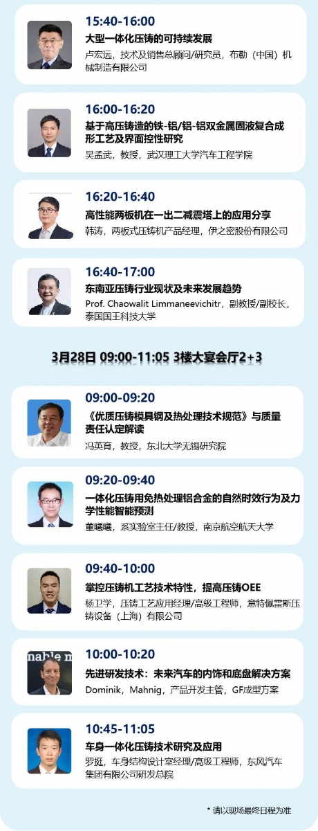 ![]() 2025年全國壓鑄行業年會—第二十屆中國國際壓鑄會議將于3月26-28日在南京富力萬達嘉華酒店舉辦,旨在匯聚全球學術界、企業界、車廠等各方力量,搭建一個高端對話與合作的平臺。會議以“鏈動全球壓鑄”為目標,與全球壓鑄同仁一起剖析壓鑄行業最新發展趨勢,探討競爭格局,為行業未來發展提前布局、科學規劃提供一些思路。誠邀壓鑄同仁蒞臨參會! 活動一覽表