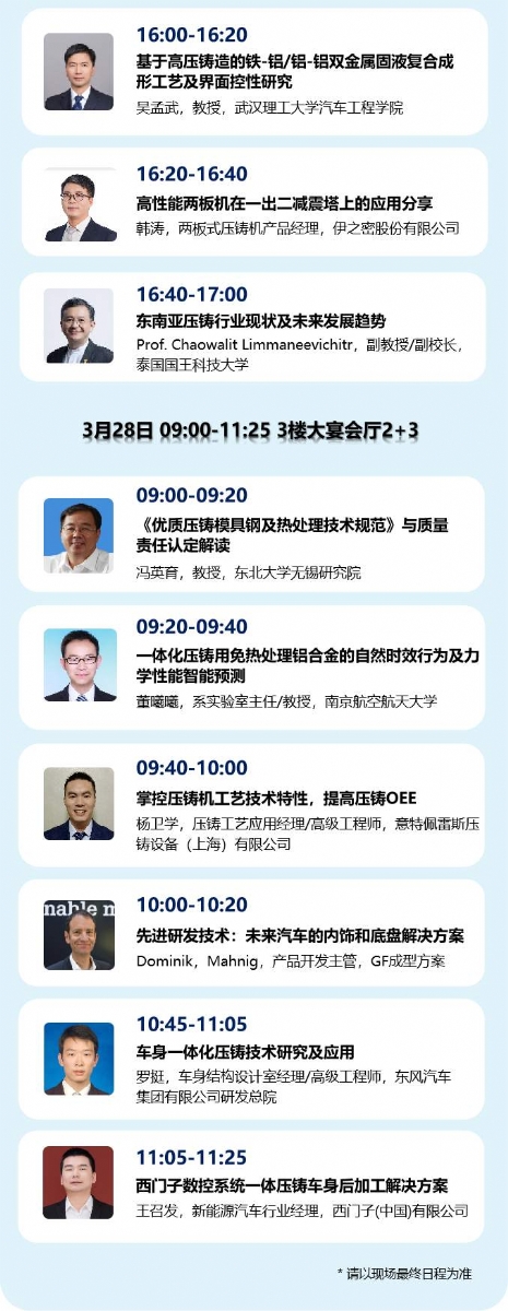 會議以“鏈動全球壓鑄”為目標,與全球壓鑄同仁一起剖析壓鑄行業最新發展趨勢,探討競爭格局,為行業未來發展提前布局、科學規劃提供一些思路。誠邀壓鑄同仁蒞臨參會! 會議亮點 主會場:技術報告